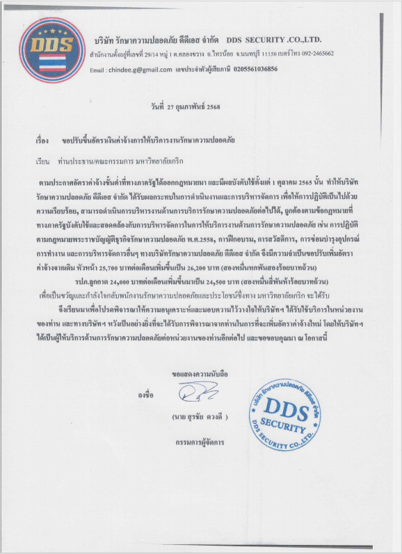 Krirk University has signed an employment contract with NP Security Guard, which had been performing its duty from May 1st, 2023 – May 1st, 2024.