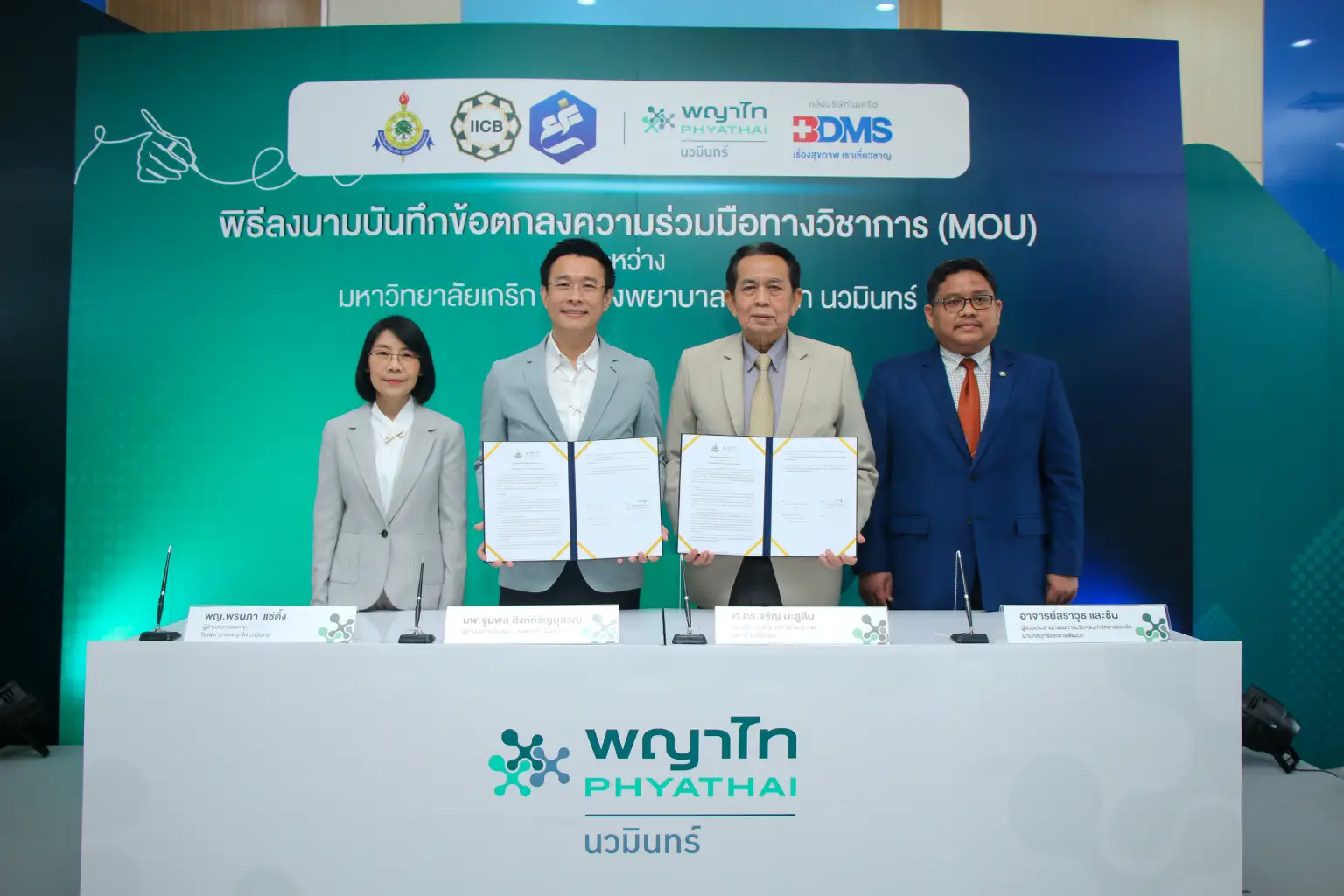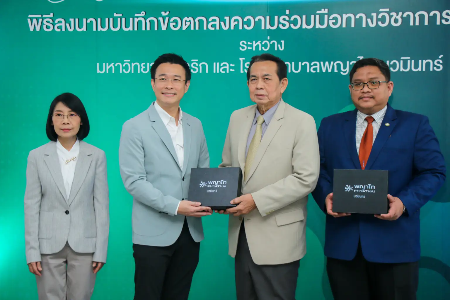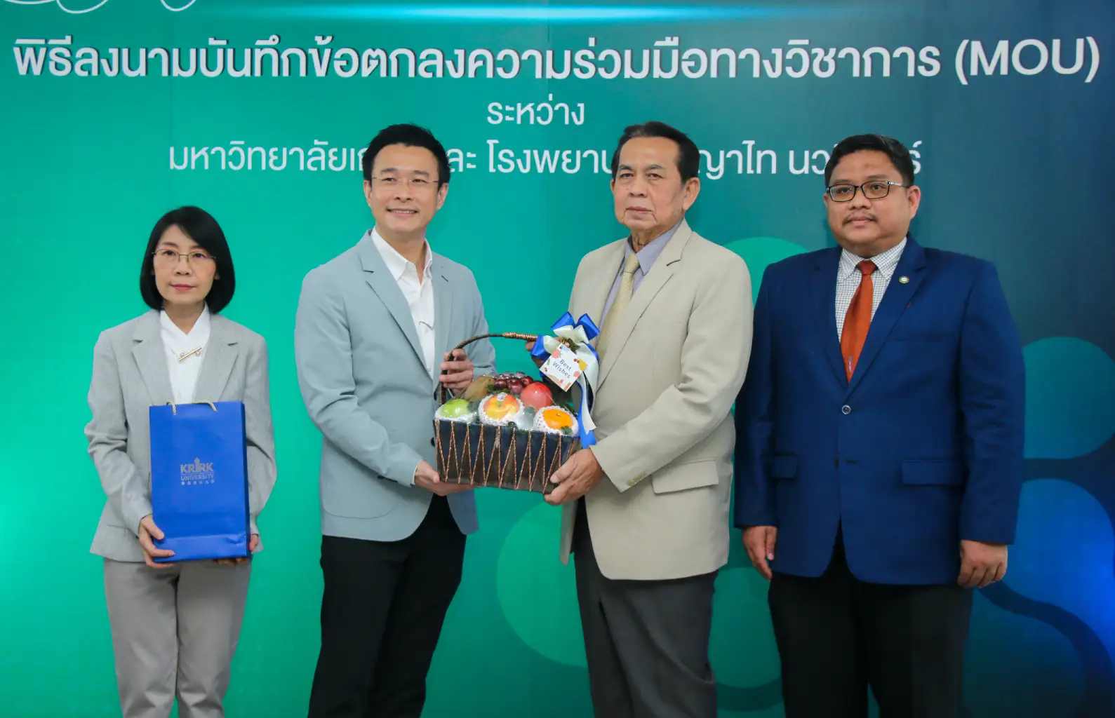 Phayathai Nawamin hospital has held a signing ceremony for an academic cooperation memorandum of understanding mou between krirk university and phayathai nawamin hospital this signing ceremony was initiated by the bangkok islamic international college of krirk university which offers a key major in the halal industry phayathai nawamin hospital emphasizes halal healthcare and providing medical services to muslim patients this collaboration will lead to the development of knowledge the exchange of experiences and cooperation in various fields that will benefit society in the future with the goal of becoming a leading halal healthcare provider in the eastern region