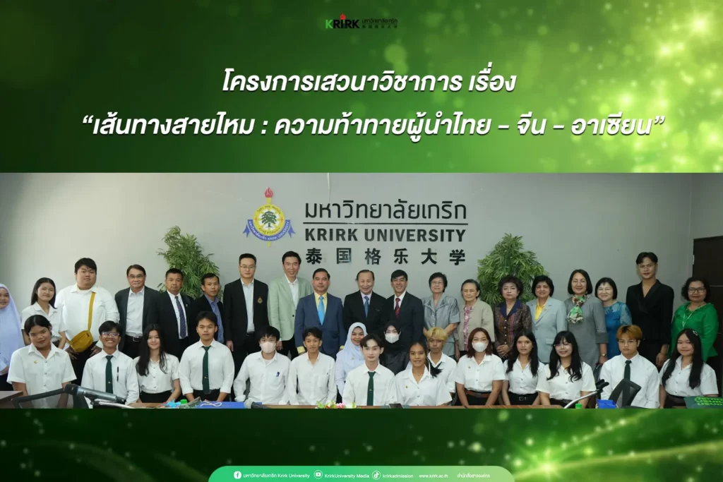On July 11, 2024, the Institute for Safety Management of Krirk University, the Leadership Development Institute, and the Thai–Chinese–ASEAN Research Institute jointly organized an academic seminar titled “The Silk Road: Challenges for Thai–Chinese–ASEAN Leaders” (Belt and Road Initiative: BRI). The event aimed to provide a platform for participants to exchange knowledge, ideas, and experiences regarding international cooperation under the Belt and Road Initiative.