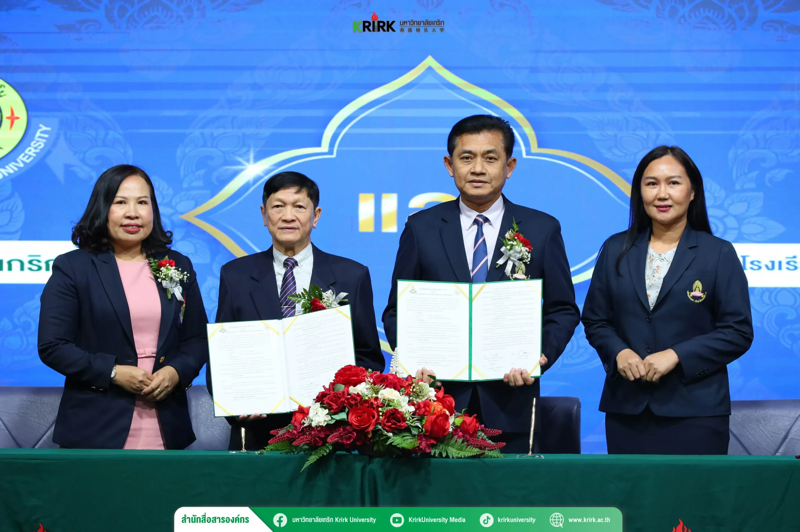 “The cooperation between Krirk University and the educational institutions signing the MOU today will propel teaching and learning to greater heights, covering academic development, vocational skills, and the application of innovation for sustainable education. This will ultimately benefit students, educational staff, and institutions in all aspects.”