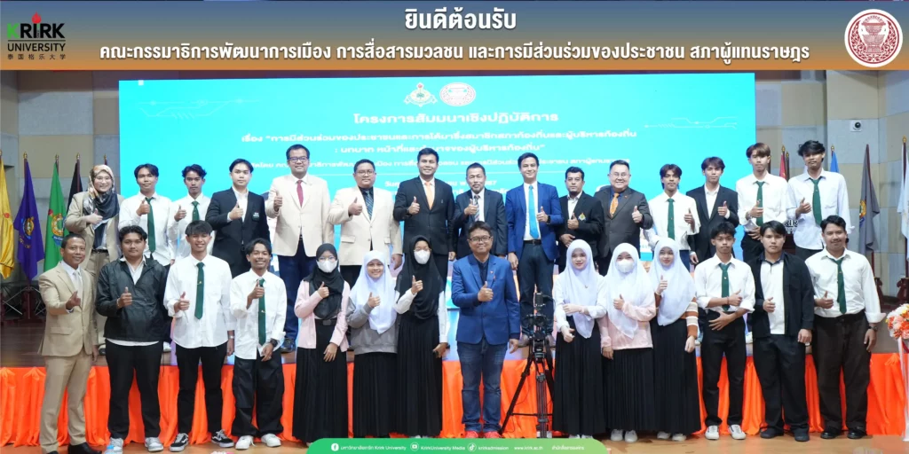 On September 20, 2024, Krirk University organized a workshop seminar under the topic: “Public Participation and the Election of Local Council Members and Local Administrators: Roles, Duties, and Powers of Local Executives.”