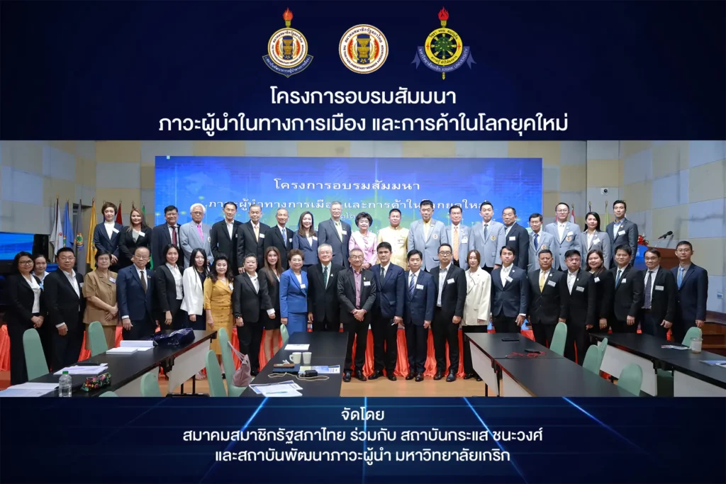 Krirk University’s Institute for Leadership Development, in collaboration with the Thai Parliamentary Members Association and the Krasae Chanawong Institute, has organized a training and seminar program on Leadership in Politics and Trade in the Modern World.